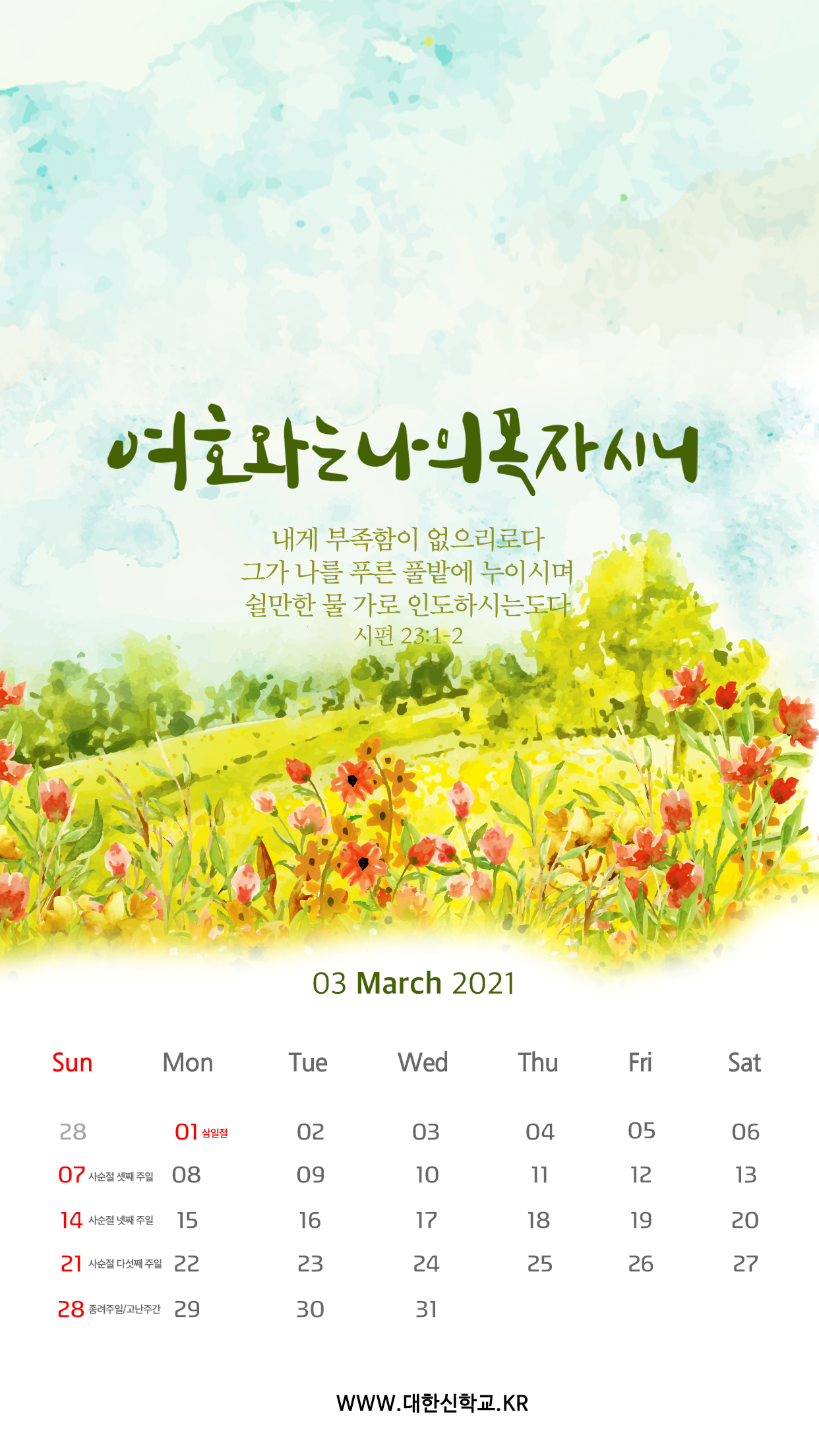 3월 한달간도 목자되신 주님의 은혜로 충만하시길 기원합니다! ^^